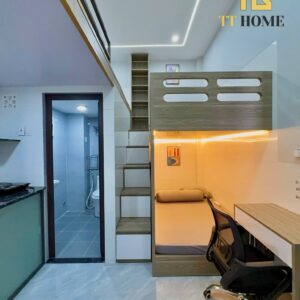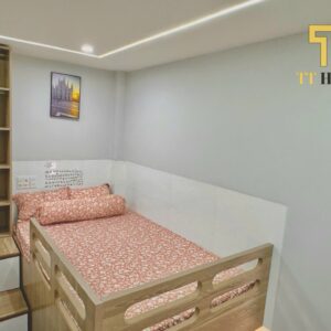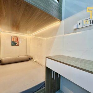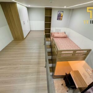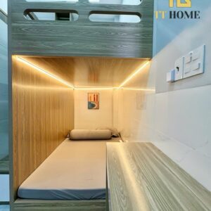 • Phòng ngủ: Giường tầng chắc chắn, tủ quần áo rộng rãi, bàn học/làm việc, sẵn ga gối nệm êm ái.